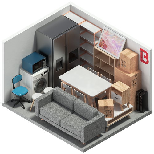 Size of a single car garage. Contents of a 3-4 bedroom house. Business stock, large equipment or office furniture
